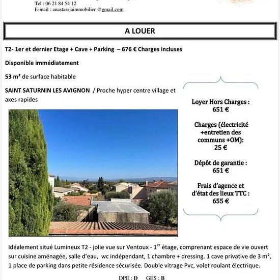- La location d'un 2 pièces à Jonquerettes coûte en moyenne 585 € et a une superficie moyenne de 41 m²