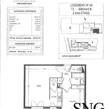2 Pièces - Appartement - 43 m²78200, Mantes la jolie