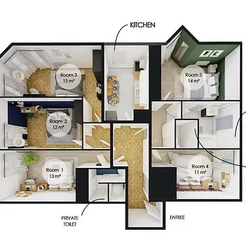 Room in a shared 22-bedroom apartment...
