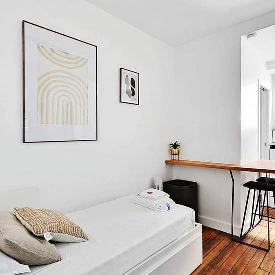 Furnished 1-bedroom apartment for rent on Avenue Victor Hugo. This is a refurbished studio apartment in a beautiful Haussmanian building, 11m2 - A living room with a single bed that converts into two beds - TV, dining area and access to the balcony. - A fully equipped kitchenette (fridge, microwave, induction cooker, kettle, coffee machine...) - A shower room with WC - Storage space - High speed internet (WiFi) and TV - Bed linen and towels provided - Gym in the building - A/C View on the Eiffel Tower Accommodation on the 6th floor with li...