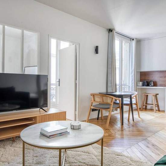 Furnished 1-bedroom apartment for rent on Rue Des Archives. The property is on the 3rd floor of a building without an elevator. The property includes equipped kitchen, washing machine, and dryer.
