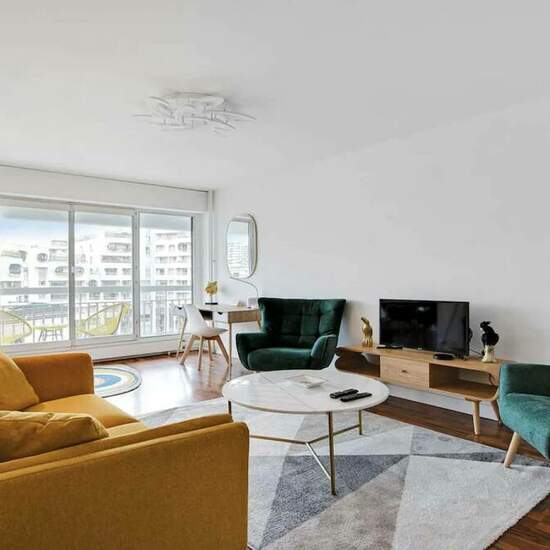 Furnished 1-bedroom apartment for rent in Paris. The property is on the 8th floor.