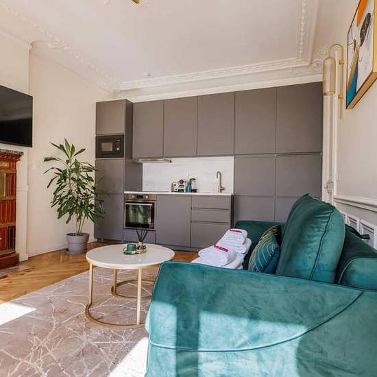 This 1-bedroom apartment in Saint-Avoye, Paris, is well-furnished and welcomes professionals, students, and couples. The apartment includes a private washing machine, an equipped kitchen, a TV, and an exterior balcony or terrace. Smoking is allowed, and overnight guests are permitted. This property has undergone verification by Spotahome for assured quality and reliability. The apartment is situated in Saint-Avoye, a lively district in Paris. Nearby, you can find multiple important tourist attractions such as Vestale, Passage Du Bourg-l'Abb...