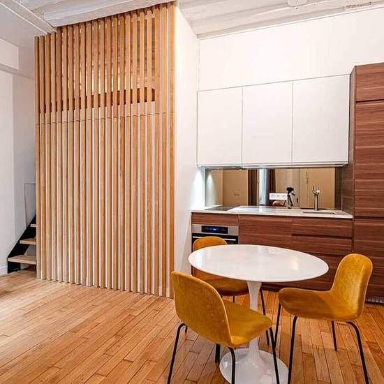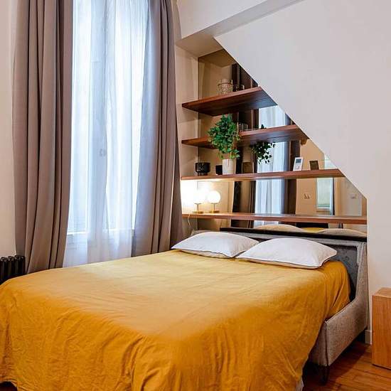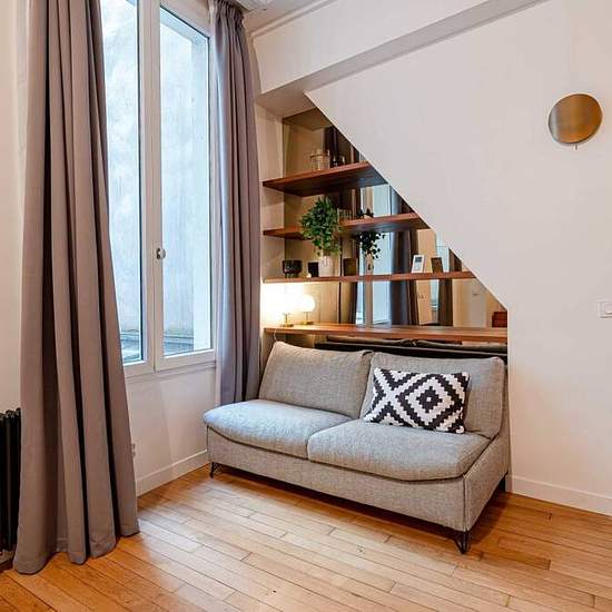 Furnished 1-bedroom apartment for rent on Rue Montmartre. This superb apartment is located on the 1st floor of a typical Parisian building and is composed of : A superb living room with a sofa bed (140x190) person A dining area with a dining table A beautiful kitchen equipped and functional: refrigerator, induction cooker, microwave oven, kettle, coffee machine, etc. A bedroom on the mezzanine that can accommodate two people, double bed (140x200) A bathroom with shower and toilet A washing machine in the bathroom Sheets and towels pr...