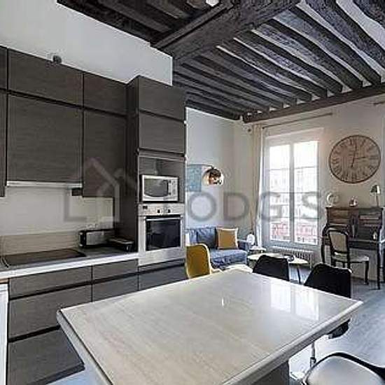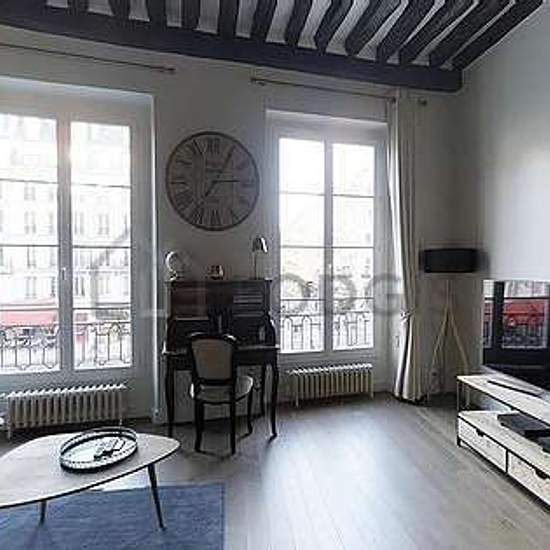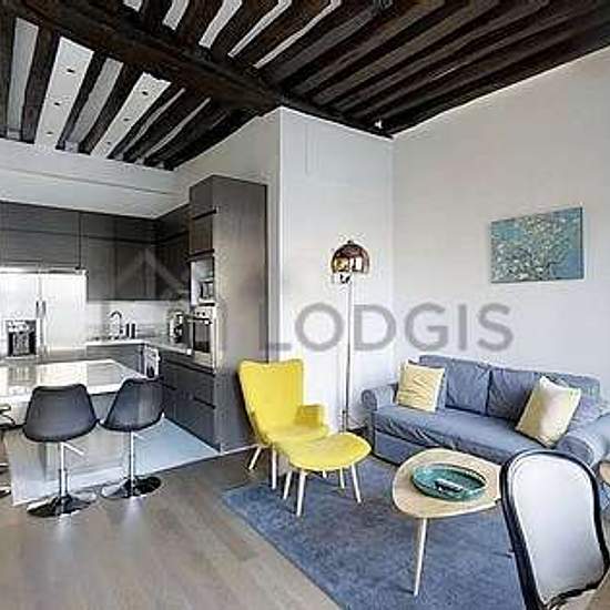 This comfortable 57 m² apartment is located on Rue Saint Antoine, in a prestigious section of Paris 4th district. Composed of 2 rooms, including 1 bedroom, this furnished apartment rental can accommodate up to 2 people. This very bright and peaceful apartment is located on the 3 floor (no lift). It is also equipt with all you need just like at home including Vacuum cleaner, Cable, Iron, Internet included, Washing machine, Linen, table linens, dish towels, armored door, Dryer, WIFI, etc. The apartment is accessible by Paris public transportat...