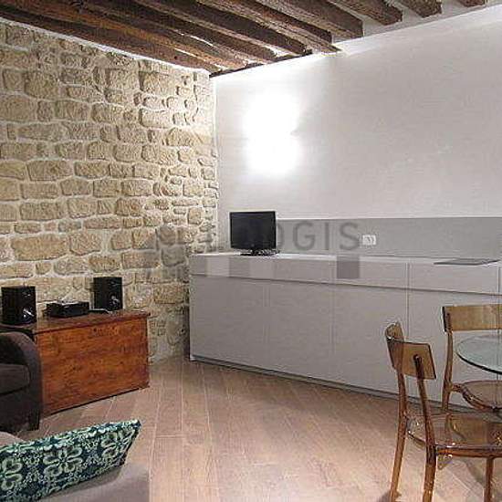 This comfortable 33 m² apartment is located on Rue Saint Martin, in a animated section of Paris 3th district. Composed of 2 rooms, including 1 bedroom, this furnished apartment rental can accommodate up to 3 people. This very peaceful apartment is located on the 1 floor (no lift). It is also equipt with all you need just like at home including Cable, Internet included, Washing machine, Linen, table linens, dish towels, Dryer, WIFI, etc. The apartment is accessible by Paris public transportation (Rambuteau/M 11, Châtelet Les Halles/M 4, RER A...