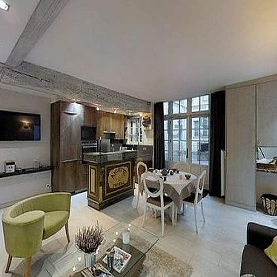 This prestigious 50 m² apartment is located on Rue Poulletier, in a prestigious section of Paris 4th district. Composed of 2 rooms, including 1 bedroom, this furnished apartment rental can accommodate up to 2 people. This bright and very peaceful apartment is located on the 1 floor (no lift). It is also equiped with all you need to feel like a parisian including Internet included, Vacuum cleaner, Iron, armored door, etc. The apartment is accessible by Paris public transportation (Pont Marie - Cité des Arts/M 7, Sully - Morland/M 7), and near...