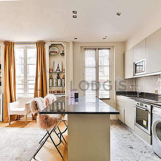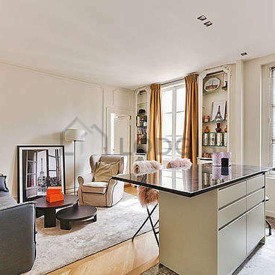 This comfortable 45 m² apartment is located on Rue Bonaparte, in a prestigious section of the 6th district of Paris. Composed of 2 rooms, including 1 bedroom, this furnished apartment rental can accommodate up to 4 people. This very bright and very peaceful apartment is located on the 5th floor - FR standard (elevator available). It is also equipped with all you need to make you feel right at home including Internet included, Vacuum cleaner, Iron, table linens, dish towels, etc. The apartment is accessible by public transportation (Saint-Ger...
