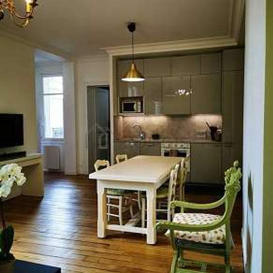 This comfortable 52 m² apartment is located on Rue Du Mogador, in a animated section of the 9th district of Paris. Composed of 2 rooms, including 1 bedroom, this furnished apartment rental can accommodate up to 4 people. This bright and very peaceful apartment is located on the 3th floor - FR standard (elevator available). It is also equipped with all you need to feel like a local including Internet included, Vacuum cleaner, Iron, table linens, dish towels, armored door, etc. The apartment is accessible by public transportation (Trinité - d'...
