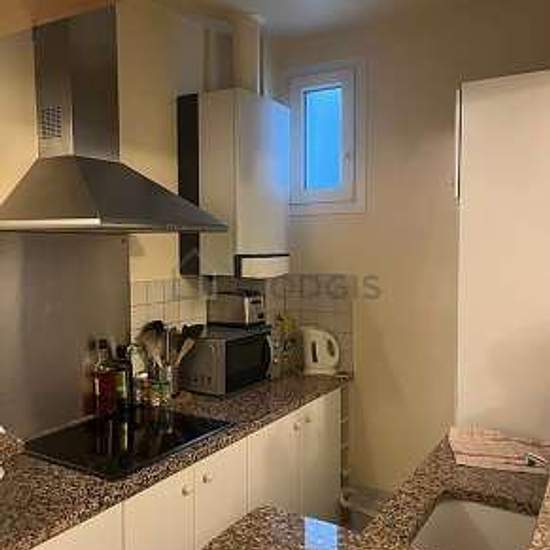 This furnished 36 m² apartment is located on Rue Mizon, in a residential section of Paris 15th district. Composed of 2 rooms, including 1 bedroom, this furnished apartment rental can accommodate up to 2 people. This very peaceful apartment is located on the 5 floor (elevator available). It is also equipt with all you need to feel like a parisian including Vacuum cleaner, Iron, Internet included, Washing machine, table linens, dish towels, armored door, etc. The apartment is accessible by Paris public transportation (Pasteur/M 6, M 12, Montpa...