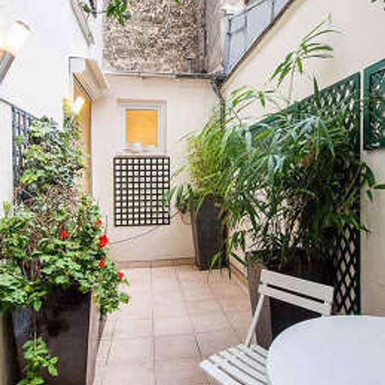 This furnished 35 m² apartment is located on Rue Des Batignolles, in a residential section of Paris 17th district. This large furnished studio rental can accommodate up to 2 people. This very peaceful apartment is located on the 1 floor (elevator available). It offers a terrace. It is also equipt with all you need to make you feel right at home including Vacuum cleaner, Cable, Iron, Internet included, Washing machine, Linen, table linens, dish towels, Dryer, WIFI, etc. The apartment is accessible by Paris public transportation (Rome/M 2, Pla...