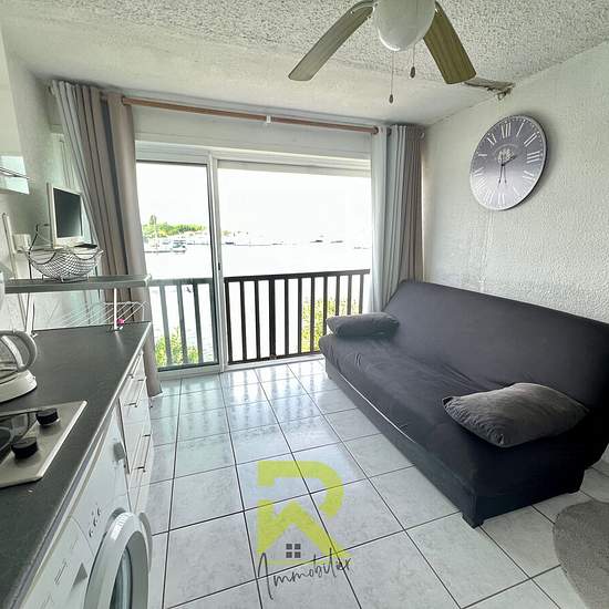 À louer à l'année studio cabine meublé situé au 1er étage d'une résidence sécurisée avec piscine et court de tennis, ce studio cabine meublé offre un cadre de vie agréable dans le secteur de l'île des pêcheurs. L'appartement bénéficie d'une belle vue panoramique sur le port, et est entièrement équipé. Le loyer est de 600eur cc. location soumise à étude de dossier locataire (gli - garantie loyers impayés) contactez stéphanie gomez 06. I5.89. Ii. 63 agence r immobilier pro, 25 avenue des sergents le cap d'agde 1.