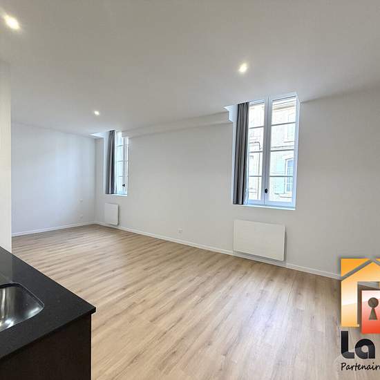Appartement 1 pièce 33 m² AGEN HYPER CENTRE - Appartement T1bis neuf Idéalement situé dans l'hyper centre d'Agen, à proximité immédiate du boulevard piéton et de toutes les commodités (commerces, lycées, gare,...) La Clé vous propose un appartement de type 1 bis, entièrement rénové au goût du jour, situé au 1er étage d'un immeuble entièrement rénové et sécurisé. D'une surface totale de 33,15 m², il est composé d'une entrée, un séjour avec cuisine aménagée et équipée, un coin nuit, une salle d'eau avec wc. Disponible immédiatement ! Modalité ...
