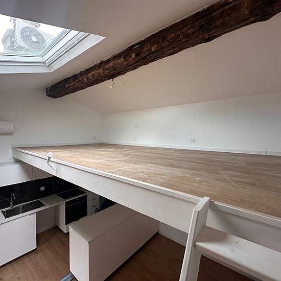 Aix centre proche de la place Miollis et du tribunal LC Gestion agence immobilière et administrateur de biens vous propose cet appartement meublé et entièrement équipé. Il se compose d'une pièce principale avec cuisine entièrement équipée type îlot central avec coin repas, d'une mezzanine accueillant un couchage deux places et des rangements, d'une salle d'eau avec wc. Cet appartement en dernier étage vient d'être complètement rénové, il sera complètement équipé avec un canapé, des rangements, de la vaisselle, un frigidaire, un four, un lit,...