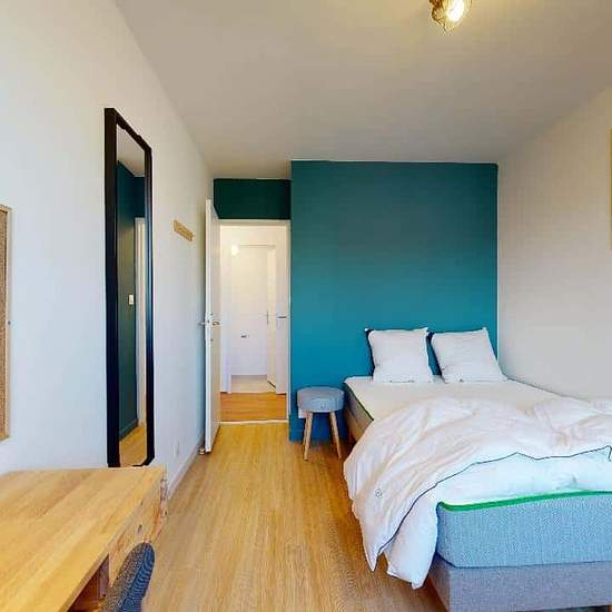 This spacious and comfortable room has been designed for you dear roomie! Practical and functional, the room is equipped with high quality bedding (140x200cm), numerous storage spaces (bed drawers, closet, shelves and night table) and a true office space for your exams or your home office days! All of this in a cheerful and warm atmosphere. In addition, you have access to a shared bathroom. Discover Aix Vignes, our cosy and freshly renovated contemporary-style apartment. Close to local shops and restaurants, it is easily accessible by bus li...