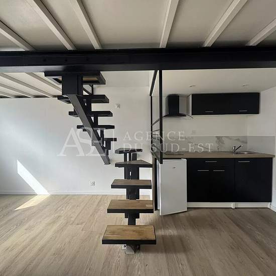 Studio centre ville sur Aix en Provence de 28m² au 4ème étage situé rue Brueys. Comprenant : une pièce principale avec coin cuisine, mezzanine, une salle de bains avec wc.