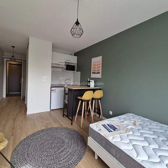 Secteur faculté, Studio meublé d'environ 21 m² situé au premier étage d'une résidence neuve et sécurisée. Il se compose d'une entrée avec placard intégré, une pièce de vie avec cuisine ouverte et équipée (hotte, plaque vitrocéramique, frigo-top, micro-ondes, cafetière) et d'une salle d'eau avec toilette. Menuiseries double vitrage, chauffage individuel électrique. La résidence dispose d'un espace co-working et d'un espace laverie communs. Les charges comprennent l'eau, l'entretien et l'électricité des parties communes. Disponible.