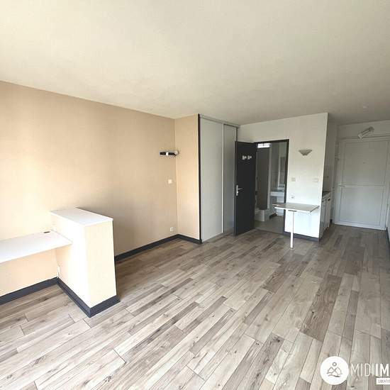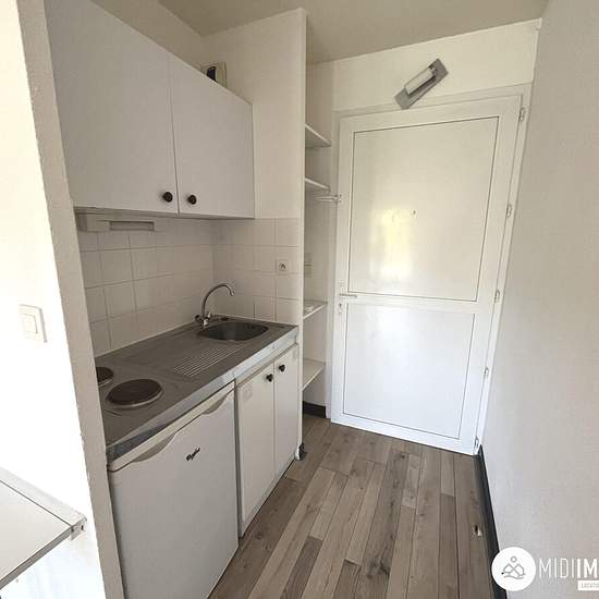 Albi, appartement T1 de 22m² habitable. Dans cette appartement vous trouverez une grande pièce de vie lumineuse donnant sur une terrasse. Un coin cuisine aménagée et équipée d'une plaque électrique 2 feux d'une hotte et d'un frigo. Une salle d'eau avec un meuble vasque et le WC. Une place de parking privative. Disponible : Immédiatement Chauffage : Electrique Menuiseries : Double vitrage Loyer : 375,00? dont provision sur charges : 25,00? par mois (entretien des communs, provision taxe ordures ménagères) Honoraires charge locataires : 250,58...