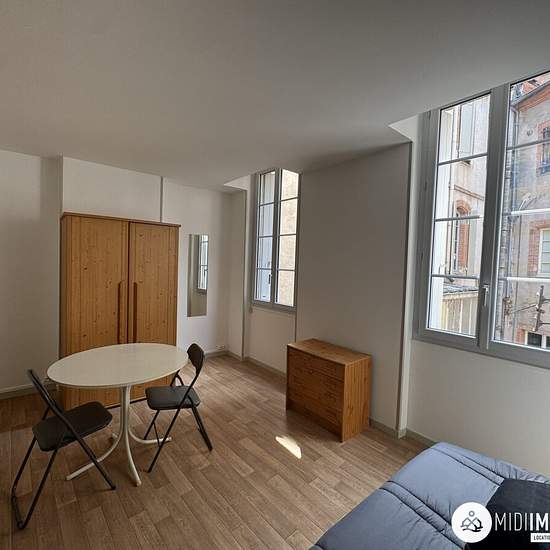 Centre ville d'Albi - Studio meublé Dans un immeuble calme et sécurisé, un appartement T1 meublé fraîchement rénové qui se compose d'une cuisine aménagée et équipée (plaque de cuisson deux feux, une hotte, un réfrigérateur, une cafetière), ensuite une pièce de vie avec coin nuit. Enfin, une salle d'eau avec toilettes. Disponible : 21/02/2026 Chauffage : Electrique Menuiseries : Double vitrage Loyer : 450,00? dont provisions sur charges : 30,00? par mois (provision consommation, taxe d'enlèvement des ordures ménagères, entretien des communs) ...