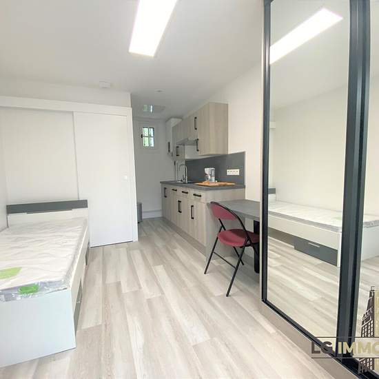 REF LA5286 - LG IMMOBILIER vous propose à la location dans le Sud d'Amiens, un appartement de type 1 meublé, d'une surface de 14.43m² comprenant : une pièce de vie avec coin cuisine équipée et aménagée, une salle d'eau avec WC. Chauffage collectif au gaz. Loyer : 465€ / mois Provisions pour charges : 60€ / mois Modalité de récupération des charges locatives : prévisionnelles mensuelles avec régularisation annuelle. Honoraires à la charge du locataire : 160.17€ dont 43.72€ de frais d'état des lieux. Dépôt de garantie : 930€ Les informations s...