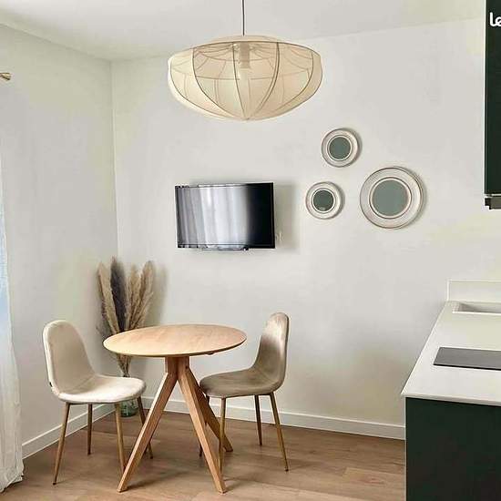 ANNEMASSE Joli Studio meublé SANS DOSSIER SANS GARANT À louer, beau studio meublé pour une ou deux personnes situé dans une copropriété bien entretenue, situé en plein centre ville à proximité immédiate de la frontière suisse. Description : Entrée avec placard Séjour/chambre lumineux avec cuisine équipée et coin repas Literie : 1 lit double, draps et serviettes inclus Salle de bain avec WC Lave linge à partager avec d'autres voyageurs Double vitrage Ce bien est proposé en location moyenne durée. Loyer : 1 200€ (dont 5 % de taxe de séjour). N...