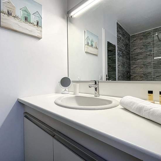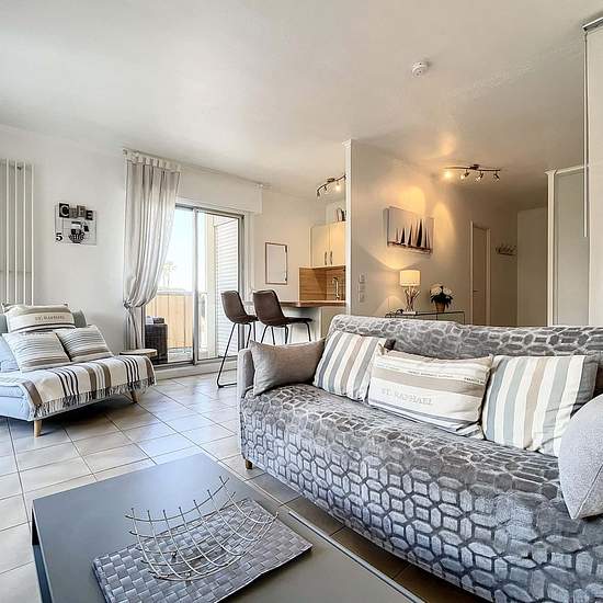 The space Très bel appartement de 37 m2 au 2ème étage avec ascenseur, terrasse et place de parking privative et piscine L'appartement entièrement équipé et climatisé se compose : D'une cuisine américaine équipée donnant sur un grand espace aménagé en salle à manger et salon (avec canapé convertible 2 personnes), parfait pour passer des moments de détente en famille. Une chambre séparée lit double, salle de douche et WC. Golf Old Course à 2 min à pied pour les amoureux du golf Bien entendu, vous aurez accès au Wifi gratuitement. Place de park...
