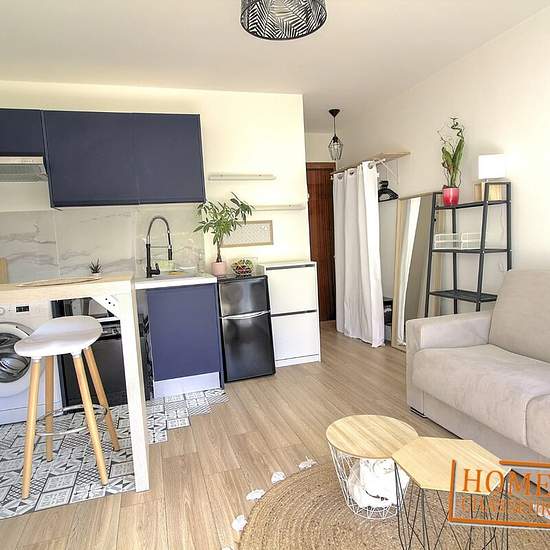 ANTIBES - Studio meublé climatisé avec superbe terrasse à louer en courte durée 30 Juin 2026. L'appartement décoré avec goût se situe dans une résidence grand standing au 12 avenue du château de l'Espée, résidence le Valencey, avec pinède et piscine. Le logement se compose d'une entrée avec rangement, d'un séjour lumineux, d'une cuisine aménagée et équipée, d'une salle d'eau avec wc et d'une grande terrasse aménagée de 20M2 Charges : eau chaude/froide collective. LIBRE A PARTIR DU 18 DECEMBRE 2025 - Contactez-nous vite au