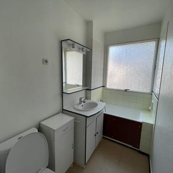 F1au 2° étage: entrée, séjour avec coin cuisine, SdB avec WC. Cave + parking extérieur privatif. Chauffage et eaux compris dans le loyer. Fenêtres double vitrage. Libre à partir du 03/02/26