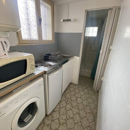 Appartement meublé en RDC ne donnant pas sur la rue, il se compose : d'un séjour avec clic-clac, espace dressing et bureau, une cuisine équipée avec (plaques, four micro-ondes, réfrigérateur, machine à laver), une salle de douches avec WC. Une grande cour privative. Loyer : 390 EUR Charges : 30 EUR (eau froide, entretien et électricité des parties communes) Honoraires : 165 EUR. Stationnement gratuit dans la rue, situé à 10 min à pied de l'école Rubika. Libre le 30/06. Lemercier-immobilier.com
