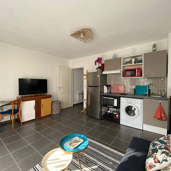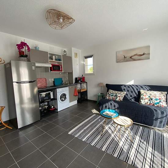 ARES : à LOUER à l'ANNEE - Superbe STUDIO MEUBLÉ situé à proximité immédiate du BASSIN d'ARCACHON et du centre ville, lumineux et très bien agencé avec un balcon, bonne exposition solaire, composé, d'un hall d'entrée avec placard, une pièce de vie avec coin kitchenette, salle d'eau avec WC et une place de parking privé - loyer mensuel hors charges 599 € + 56 € d'avance sur charges - libre au 1er mars 2026- honoraires 503 € ttc (dont 84 € état des lieux de sortie). Honoraires de 503 € TTC à la charge du locataire comprenant 84 € TTC pour l'ét...