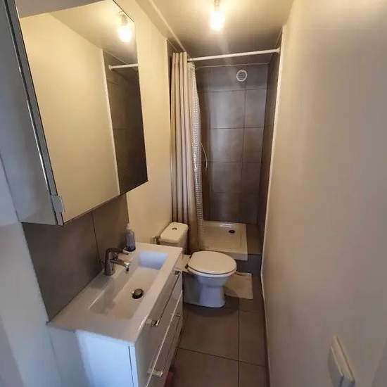 Appartement de 29 m² à louer sur Argenteuil L'appartement situé au 1er étage sans ascenseur d'une grande Maison séparée en plusieurs Lots avec une entrée privée pour l'appartement. Il est localisé dans le quartier des Champioux, dans un quartier Pavillonnaire très calme. (avec commerces à proximité, gare du Val d'Argenteuil à 5min en bus) Composition : 1 Cuisine équipée séparée (réfrigérateur / congélateur, kitchenette avec plaque, placards, ustensiles de cuisine de base et Machine à laver). 1 Séjour avec canapé convertible en lit double, ta...