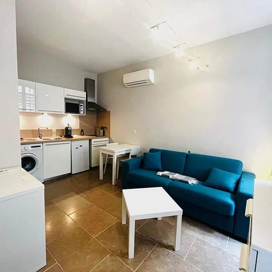 A louer, charmant studio entièrement meublé, équipé et climatisé en rez de chaussée en plein coeur du centre historique, rue Réattu à deux pas du musée, de la gare et des commodités du centre ville. Les charges comprennent l'eau, la TOM le wifi et l'électricité des communs.