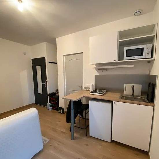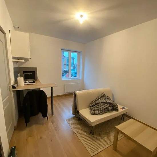 Appartement de 17 m² à louer sur Armentières Studio meublé, récemment rénové et lumineux. Il est situé au 1er étage d'un petit immeuble. Double vitrage. Cuisine équipée : plaques induction, évier, frigo, micro-ondes SDB neuve avec meuble vasque, douche. WC. Canapé lit, table basse, table bar, chaise haute Position idéale. Tout à pied : - quartier des lycées et écoles : 3 min - centre ville : 5 min - gare : 10 min (1 train toutes les 15 min en moyenne pour Lille, 15 minutes de trajet) - centre hospitalier : 15 min. Situé Rue Jules Lebleu, pro...