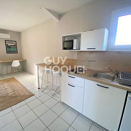 En exclusivité dans votre Agence Guy Hoquet - Couleurs Sud Immobilier à Aubenas ! Découvrez à la location la toute nouvelle Résidence ' Les Balcons de Roqua' (anciennement la Résidence 'Le Pigeonnier'). Nous vous proposons de superbes studios d'environ 26 m², entièrement meublés, pensés pour votre confort et votre bien-être. Chaque logement, situé au 1er étage, se compose : * d'une pièce de vie lumineuse, * d'une cuisine moderne, aménagée et équipée (plaques de cuisson, réfrigérateur, micro-ondes), * d'un canapé convertible, * d'une salle d'...