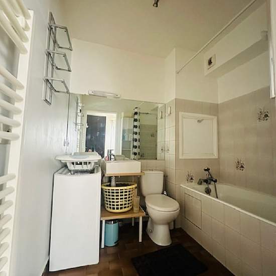 En plein centre ville, dans petit immeuble de 4 étages, appartement de type F1 meublé, vous offrant une entrée sur cuisine aménagée équipée, une pièce principale, une salle de bains avec wc. Ainsi qu'une cave et une place de parking.