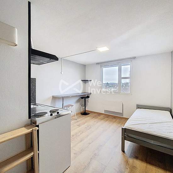 Découvrez ce studio meublé et équipé de 19 m², au 3ème et dernier étage d'un immeuble sécurisé (sans ascenseur) construit en 1996 situé en plein centre ville d'Aulnoye-Aymeries (à proximité de la gare, des commerces, des transports...). Ce studio vous offre une pièce principale lumineuse avec petite cuisine aménagée et équipée (frigo, plaques électriques, hotte), un coin nuit avec lit simple et matelas, un mange debout, puis une salle de bains avec lavabo et WC. Chauffage individuel électrique. Ouverture PVC avec double vitrage sans volet. G...