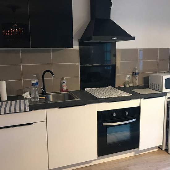 31 rue des Forgerons 15000 Aurillac Au 1 er étage d'un petit immeuble en centre-ville avec petit balcon 25.35 m2 Une grande pièce en « L » avec coin cuisine équipée ; frigidaire, plaques, hotte et rangements Coin couchage avec rangement Une salle de bain avec cabine de douche et WC Chauffage individuel électrique DPE référence 2079 libre