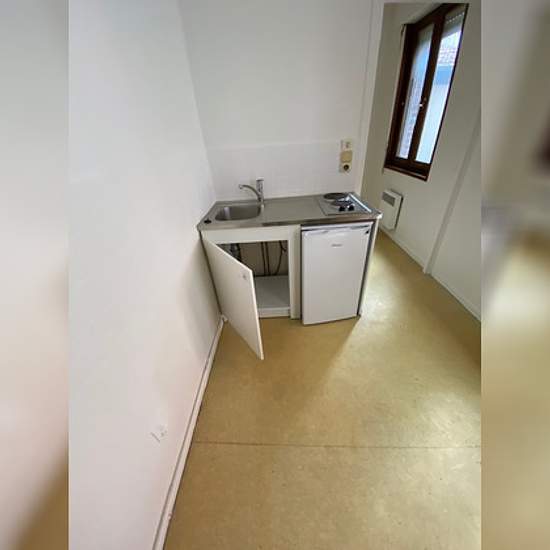 Studio centre ville de Bapaume comprenant; une cuisine avec plaque et réfrigérateur, un dégagement, une salle de bains avec baignoire, et un wc. Disponible mars Loyer 295 eurosHC Agence Géronimmo: