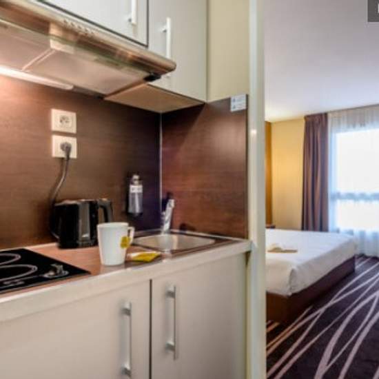 De passage dans la ville de la Cité du Vin, venez profiter du confort de notre résidence. À seulement 4km du centre-ville et accessible depuis la sortie 21 de la rocade Bordelaise, notre résidence sera le lieu idéal pour vos séjours d'affaires et de loisirs. Le studio double de 21m² pour 1 à 2 personnes se compose d'un espace de vie avec un grand lit double (180*200), d'une salle de bain, d'une TV LCD et d'une kitchenette. La cuisine dispose d'un réfrigérateur, d'un four à micro-ondes, d'une hotte aspirante, de plaques vitrocéramiques et d'u...