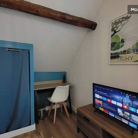 La Belle Rive du voyageur welcomes you for a calm, rejuvenating stay in the heart of the town of Bellerive-sur-Allier, close to Vichy, which has recently been registered by UNESCO as a spa town in Europe (Grandes villes d'eaux d'Europe / Great Spa Towns of Europe). You can park easily close to the building and discover a flat with a travel and world theme. A fully equipped kitchen with kettle, coffee maker, gas hob, fridge/freezer and microwave to prepare all your meals. In the main living area there is a large table with four chairs and a s...
