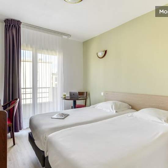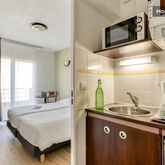 Whether you're staying for a few days or several months, the residence in the centre of Béziers puts all its expertise into providing a high-quality, personalised welcome. You'll enjoy strolling along the Canal du Midi or savouring the lively atmosphere of the arena in fine weather. The studio is located in a fully-secured residence with lift access. It is decorated in a modern style and can accommodate 2 people. It includes a lounge area with TNT television and a kitchenette equipped with a fridge, ceramic hob, microwave and cooking utensil...