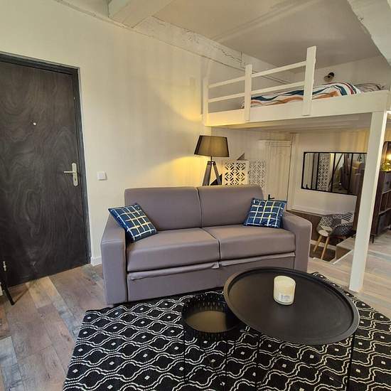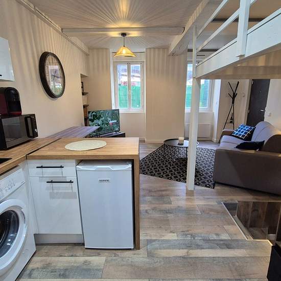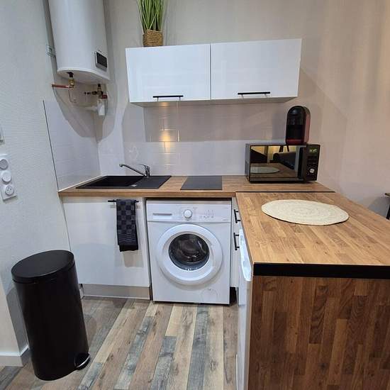 - BILLERE- STUDIO de 25 m2 environ - entièrement Meublé et Rénové- Situé route de Bayonne, à 4 min du centre ville, au rez-de-chaussé d'un immeuble sécurisé, cet appartement comprend : Une pièce de vie LUMINEUSE avec mezzanine (lit double), une cuisine équipée et aménagée (plaque électrique, réfrigérateur top, machine à laver), une salle d'eau ( douche, meuble vasque, toilettes). Mobilier de qualité neuf! Chauffage électrique, double vitrage. Proche de tous commerces et transports. - DISPONIBLE IMMEDIATEMENT- Honoraires de 309 € TTC à la cha...