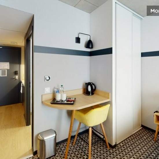 Fully equipped and decorated with refinement, this studio is equipped with a functional kitchenette (refrigerator, ceramic hob, microwave, electric coffee maker and kettle, crockery and kitchen utensils), a bathroom with WC. Your flat is equipped with television with international channels and wifi access. The flat is located only 5 minutes from the Toulouse airport terminal. There is a relaxation area where you can relax or do some sport. The Appart'hotel offers a free airport shuttle to the Matabiau train station 5 days a week. Perfectly l...