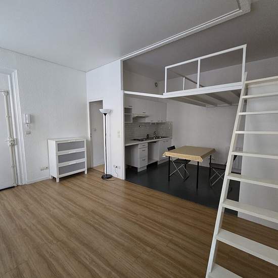 BORDEAUX - Place Tourny Au premier étage d'un immeuble pierre, T1 bis de 26,92 m² composé d'une pièce principale avec cuisine aménagée et équipée ouverte, mezzanine, salle de bains avec wc. Disponible de suite Honoraires de 353,19 € TTC à la charge du locataire comprenant 81,57 € TTC pour l'état des lieux. Zone soumise à encadrement des loyers. Loyer de référence majoré (loyer de base à ne pas dépasser) 616.00 €/mois. Loyer de base 616.00 €/mois. Provision sur charges 23 €/mois, régularisation annuelle. Dépôt de garantie 616 €. Classe énergi...