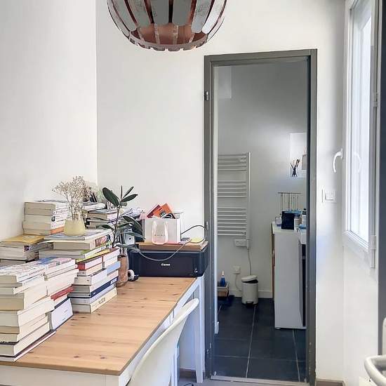 BORDEAUX SECTEUR VICTOIRE, Appartement TRIPLEX Atypique Meublé de 26.62m², dans un petit immeuble en pierre, à deux pas du tram et des commerces. L'appartement est composé d'une cuisine aménagée et équipée (plaques de cuisson, réfrigérateur et hotte), un escalier qui dessert un premier palier avec un bureau et une salle d'eau avec WC, et un second palier donnant également sur un bureau et une salle d'eau avec WC. Le logement dispose également d'une cour privative avec un petit cellier avec branchement machine. Disponible dès maintenant Loyer...