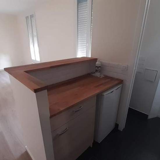 Rue de l'Est - Route de la Reine immeuble ancien, au 2ème étage sans ascenseur, un STUDIO composé d'une entrée, cuisine américaine équipée (plaques, hotte, plaque et frigo) salle d'eau wc avec fenêtre, séjour, volets roulants motorisés, double vitrage, chauffage ind.électrique. (photos 2023)