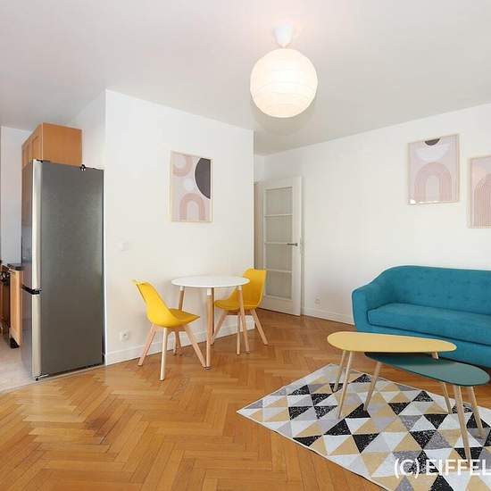 Très bel appartement meublé refait à neuf situé avenue Pierre Lefaucheux en bordure de Seine. A proximité du métro Pont de Sèvres (ligne 9). Au 4ème étage avec ascenseur dans un immeuble récent. Appartement entièrement repeint, ameublement neuf et contemporain. D’une surface de 43m2, l’appartement se compose d’une entrée avec rangements, d’un séjour en double exposition avec balcon (orienté Plein Ouest), d’une coin cuisine équipée (électroménager neuf), d’une chambre avec rangements et d’une salle de bain avec WC. Appartement lumineux et ...
