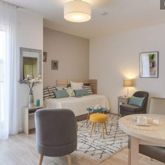 Installez-vous aux portes de Lyon, dans un nouveau quartier moderne et accueillant au cœur de la ville. Confortablement installé dans votre appartement, vous vous sentirez bien chez vous. Vous apprécierez les nombreuses prestations de service de cette résidence. Confortable et soigneusement agencé, le logement répond parfaitement à vos besoins : cuisine aménagée ouverte sur le séjour, grande salle d'eau adaptée, connexion Wifi, décoration au goût du jour... Tout a été conçu pour votre bien-être. Une laverie est présente dans la résidence.