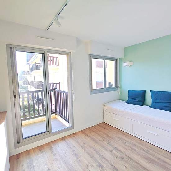 Exclusivité! A Cabourg, dans une résidence de standing avec piscine et tennis, agréable studio aménagé pour trois couchages et entièrement rénové avec matériaux de qualité. Le bien se compose : d'une pièce à vivre lumineuse donnant sur un balcon VUE MER, une kitchenette aménagée et équipée, une salle d'eau avec douche et w-c. La résidence est en ACCES DIRECT à la PLAGE. PROCHE THALASSO et GOLF, à 50M de la Promenade Marcel Proust, 20 minutes à pied du centre-ville de Cabourg et des commerces. Classe énergie : D! Loyer : 490 Euro par mois don...