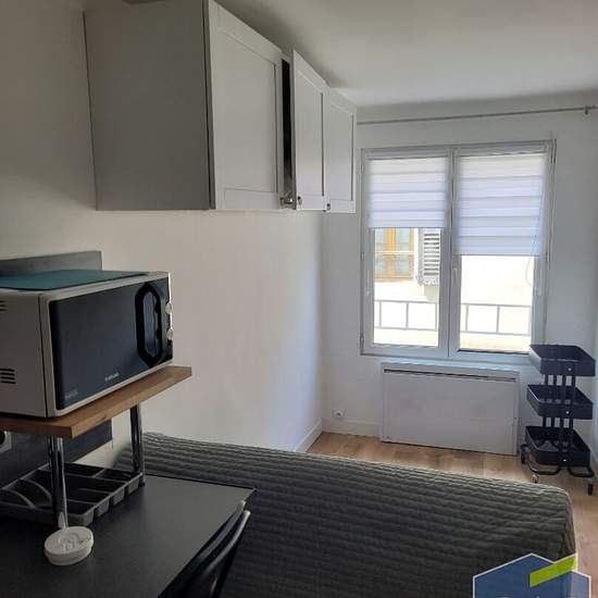 Studio meublé de 13m² au 1er étage comprenant : une pièce de vie avec kitchenette, salle d'eau et WC. Chauffage individuel électrique. Provisions sur charges 28Euro/mois (dont 8Euro/mois TOM). Libre au 16 mars 2026.